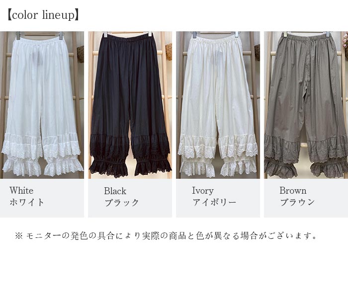 ペチパンツ レース 刺繍 ロング パン レディース インナー 下着 ペチコート 特集 ホワイト ブラック アイボリー ブラウン