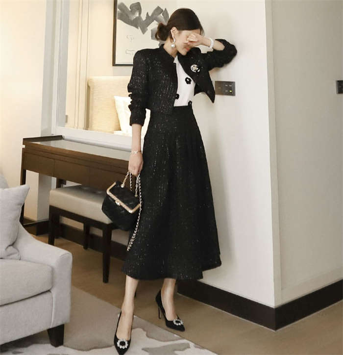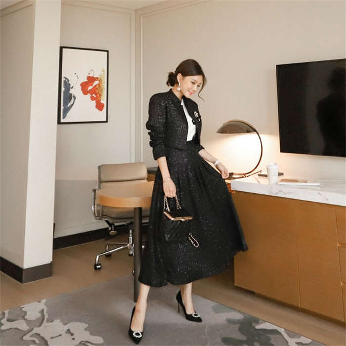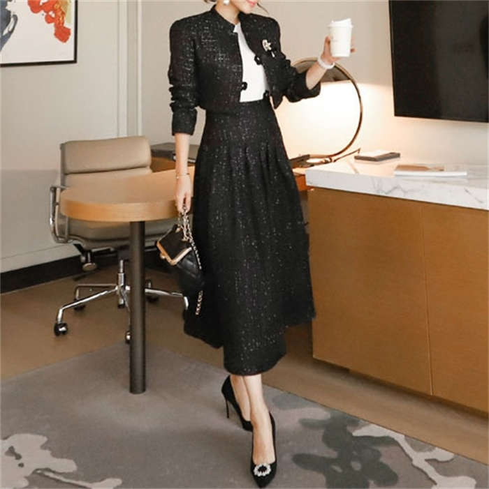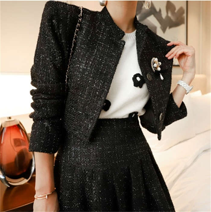 スカートスーツ ツイード ノーカラージ レディースファッション 豊富な品揃え S M L XL