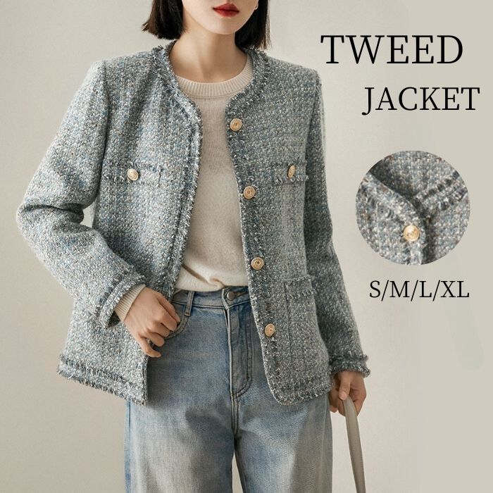 ツイードジャケット レディース 春 秋 レディースファッション 豊富 S M L XL