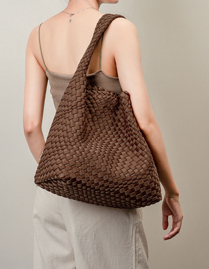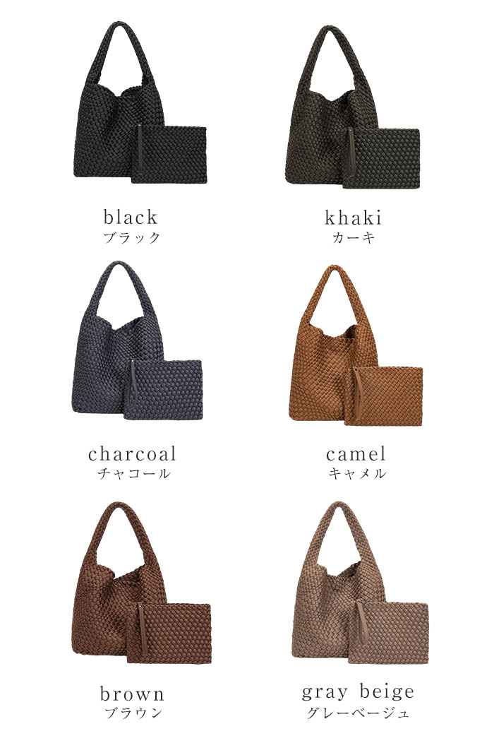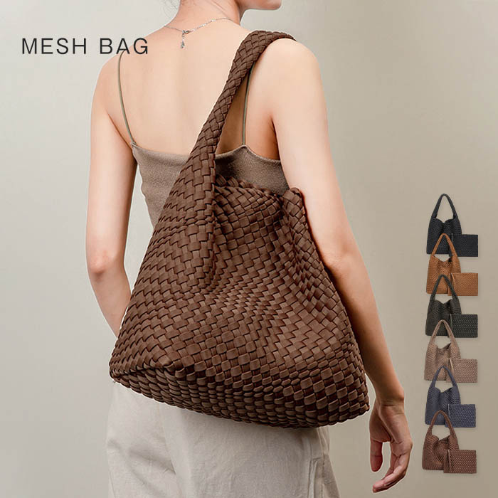 トートバッグ レディース ネオプレン メッシュ 編み込み ポーチ付き バッグインバッグ イントレチャート 肩掛け ダイバー素材 大人 シンプル 通勤 通学 大容量 撥水 軽量 通勤バッグ 夏バッ 軽い