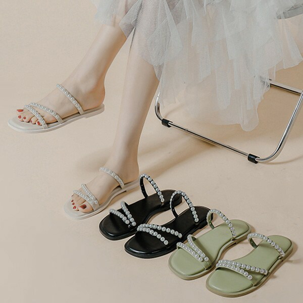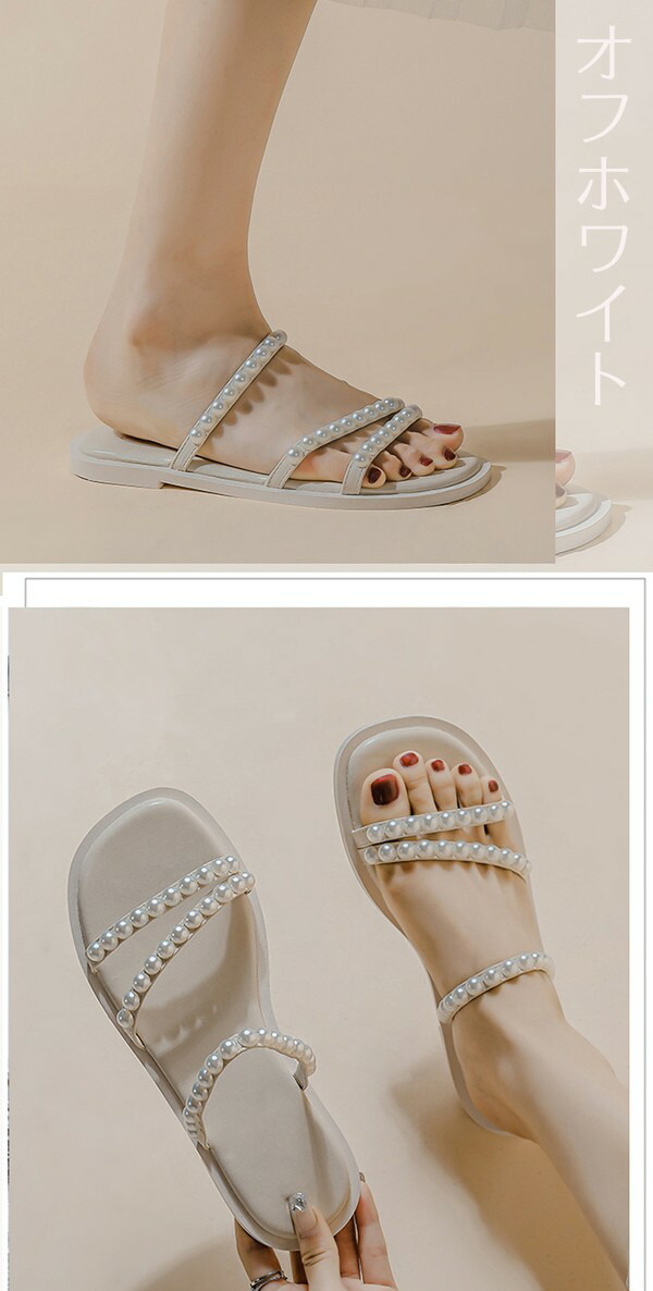 サンダル フラットシューズ レディース パール ローヒール 26.0 26.5 大きいサイズ ぺたんこ 歩きやすい 疲れにくい おしゃれ かわいい きれいめ 旅行 履きやすい 柔 走れる