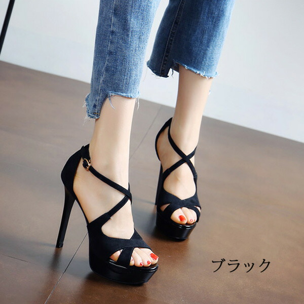サンダル ハイヒール ピンヒール ヒール12cm 小さいサイズ レディース ブラック 大きいサイズ 靴 大人 春夏 さんだる 女性