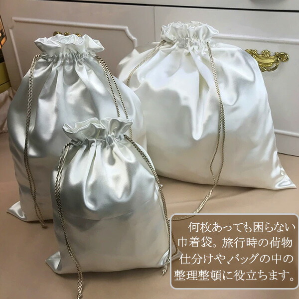 高級巾着 コットン 巾着袋 大 無地 光沢 収納バッグ プレゼント包装 収納袋 きんちゃく インナーバッグ おしゃれ かわいい バッグインバッグ シンプル バッグ 整理 かばん トートバッグ オ 横型
