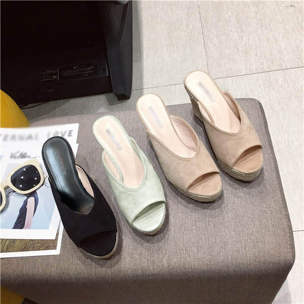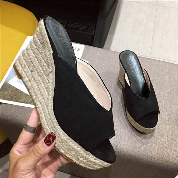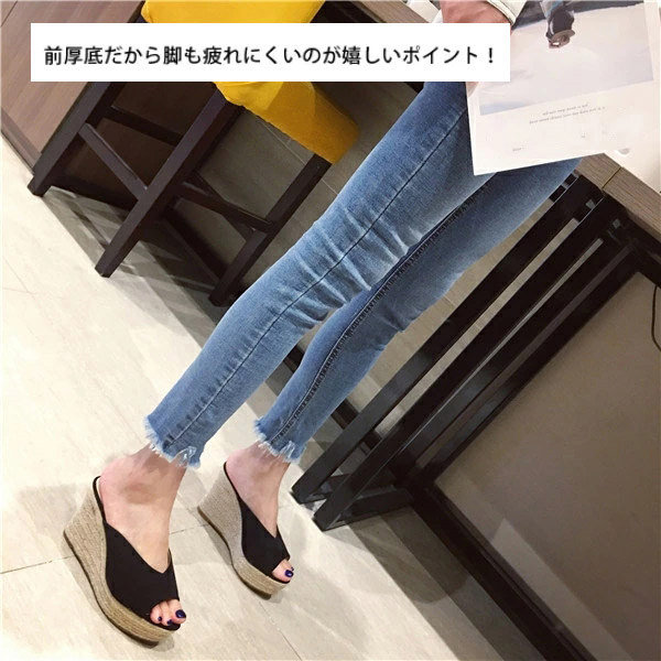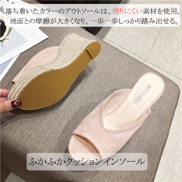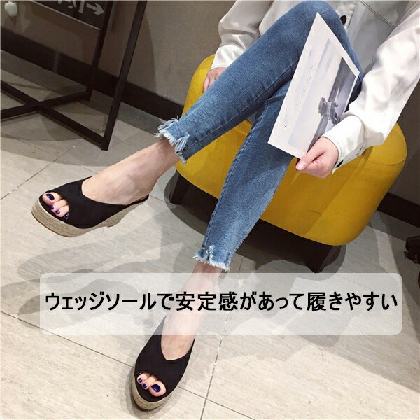 厚底サンダル レディース ウェッジソール サンダル 美脚効果 ジュートサンダル 歩きやすい 疲れにくい かかとなし つっかけ オープントゥ 厚底靴 ジュート 春夏 きれいめ 旅行 黒 緑 2 ブラック
