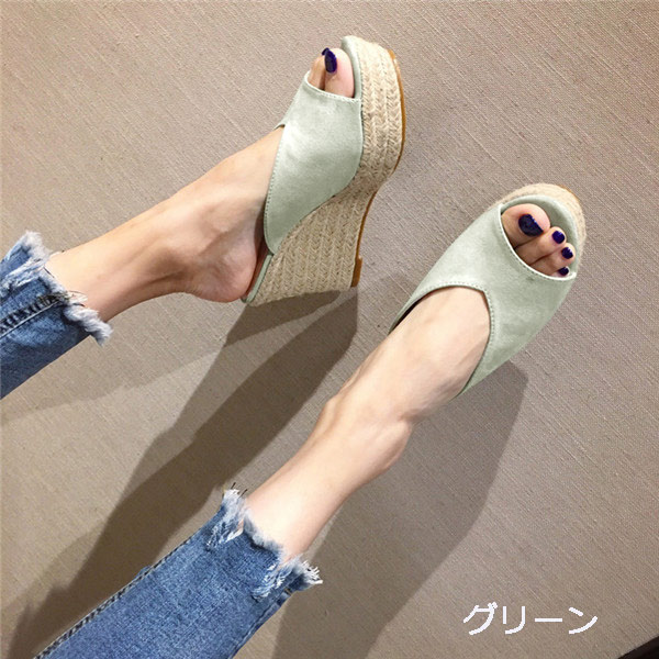 厚底サンダル レディース ウェッジソー 靴 早い者勝ち 22.0 22.5 23.0 23.5 24.0 24.5 ベージュ ブラック グリーン