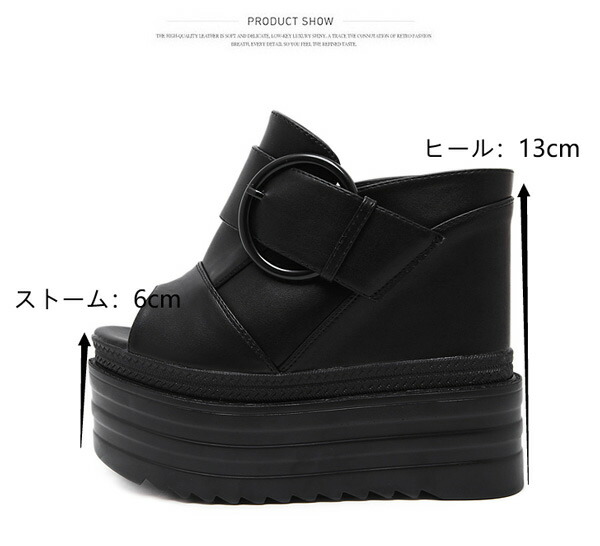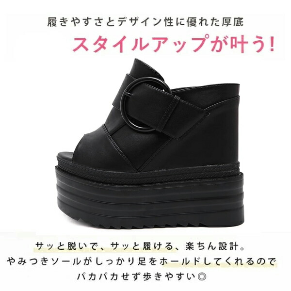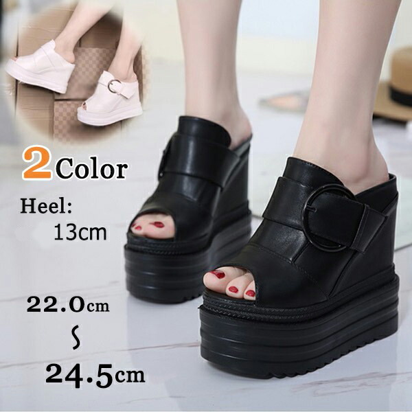 厚底サンダル ウェッジソール サンダル レディース 歩きやすい 軽量 疲れない スリッポン ヒール13cm 厚底 ミュール オープントゥ美脚 おしゃれ 白 かかとなし プラットフォームソール 春 黒