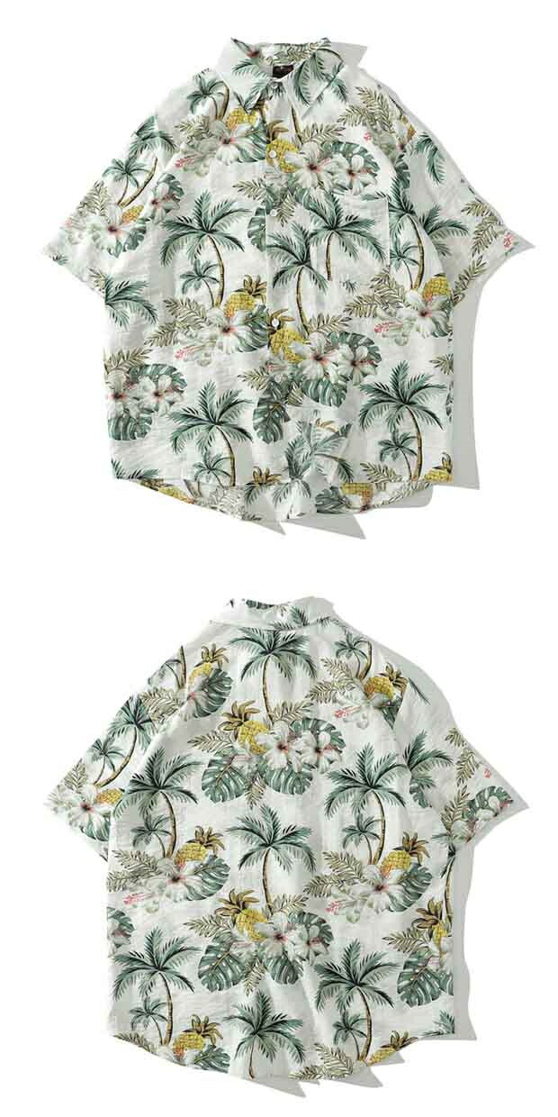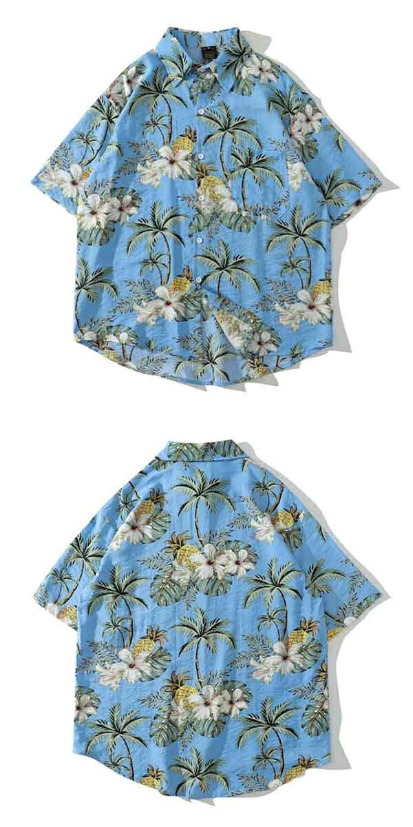アロハシャツ ハイビスカス シャツ メンズ レディース 男女兼用 開襟シャツ 夏物 ハワイアン ココナツプリント カップル カジュアル ストリートリゾート レトロ ホワイト ブルー イエロー ブラック