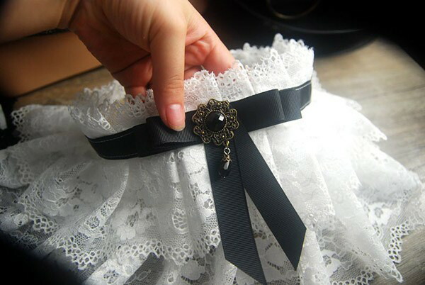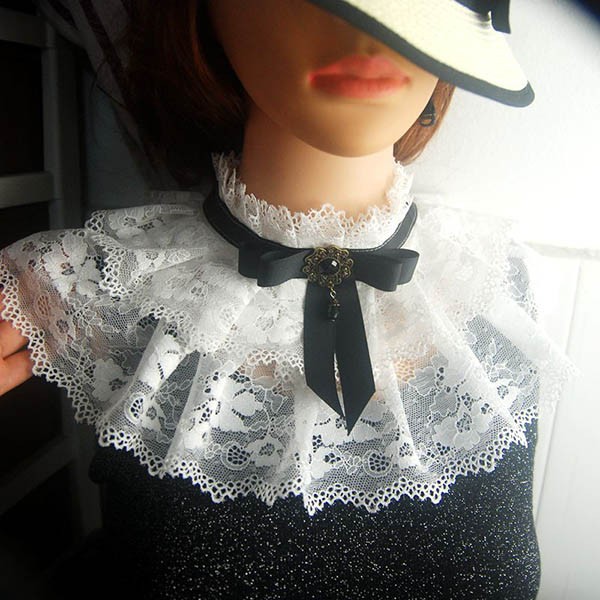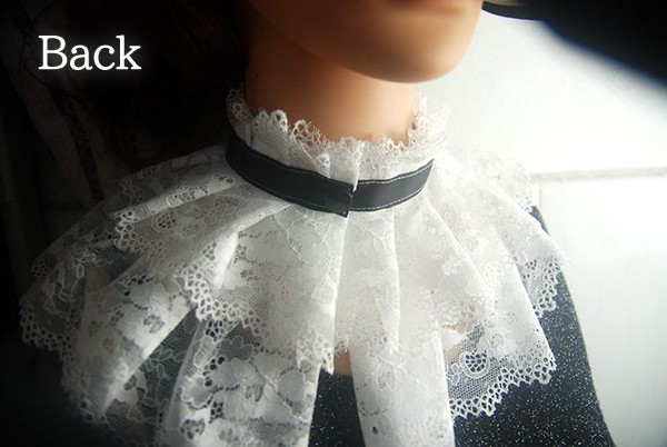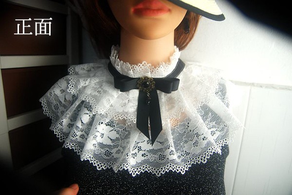 つけ襟 レース 大人 付け襟 レディース ロリータ ゴシック リボン 夏 ネックカバー 透け感 レイヤード 重ね着 上品 かわいい コスプレ小道具 王子様 貴婦人 仮装用 コスチューム ホワ お嬢さま