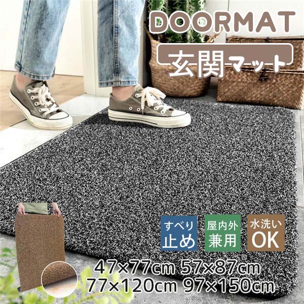 おしゃれな玄関マット 4サイズ 2カラ 47×77cm 57×87cm 別途980円 77×120cm 別途3980円 97×150cm 別途5980円 グレー ブラウン