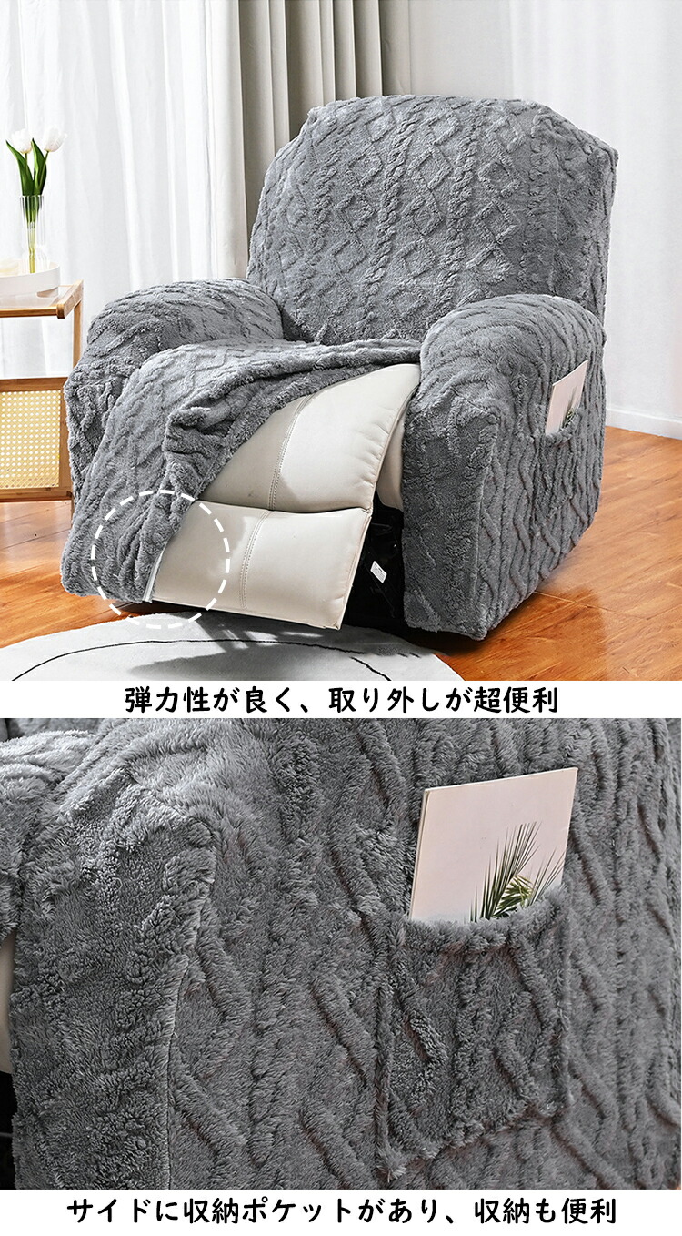 リクライニングチェアカバー 秋冬 リクライニングソファーカバー フィット 電動 1人掛け 2人 ふわふわ かけるだけ ソファカバー 椅子カバー 犬猫対策 オールシーズン 爪とぎ 汚れ防止 ゴム 肘付き