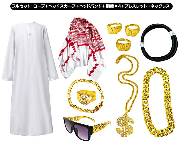 ハロウィン 衣装 石油王 コスプレ 変装 アラブ コス 男性 女性 大人 大富豪 王様 面白い おもしろ メンズ パーティー キャラクター halloween ローブ 舞台 コスチ イベント