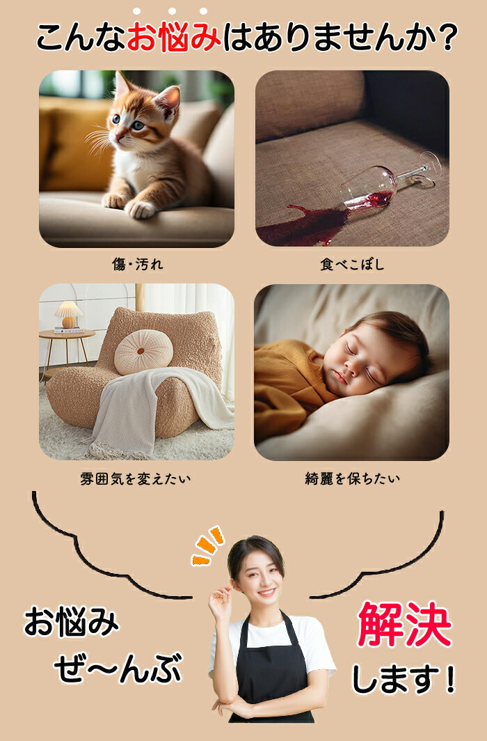Point 3.【キズ・汚れ防止に】ペットの爪とぎや、食べこぼしなどの汚れから大切なソファを守ります。