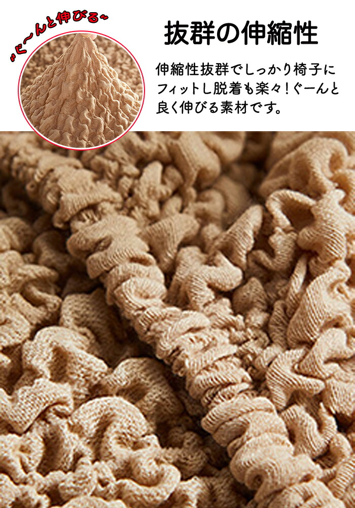 Point 1.【抜群のフィット感】ぐーんと伸びる伸縮素材と、ソファ全体を覆うフルカバータイプで、シワなくきれいに装着できます。