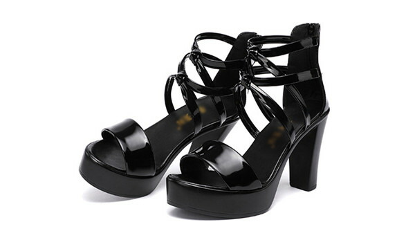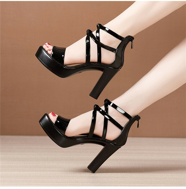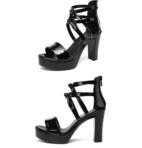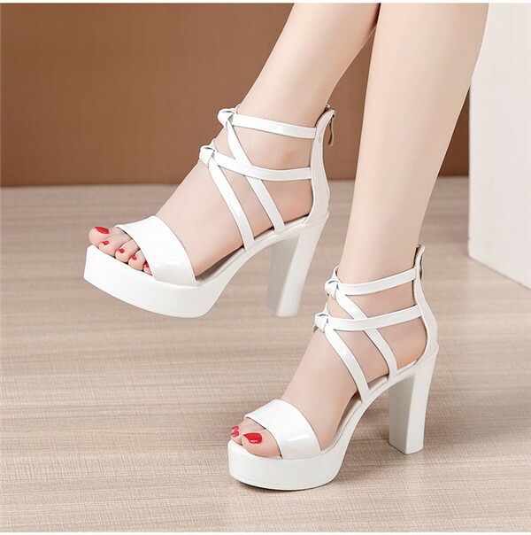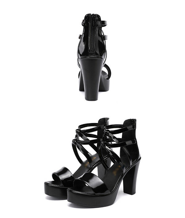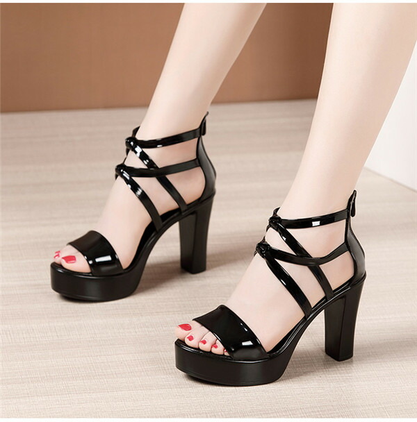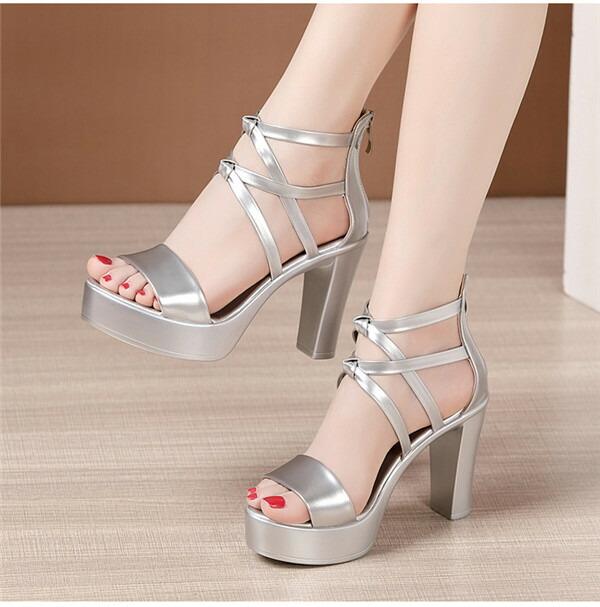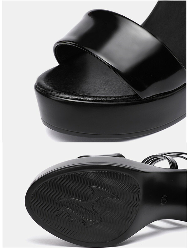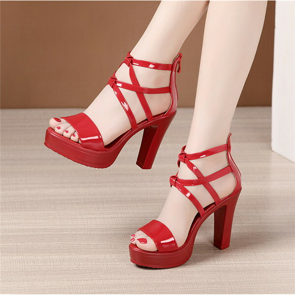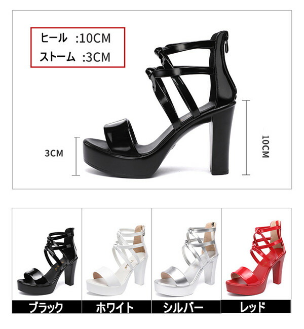 厚底サンダル レディース ストラップ ハイヒール 太ヒール ストーム付き ヒール10cm 美脚 走れる 大きいサイズ 小さいサイズ 歩きやすい 黒 白 赤 21.0cm~26.5cm 4色展開 ベ 銀