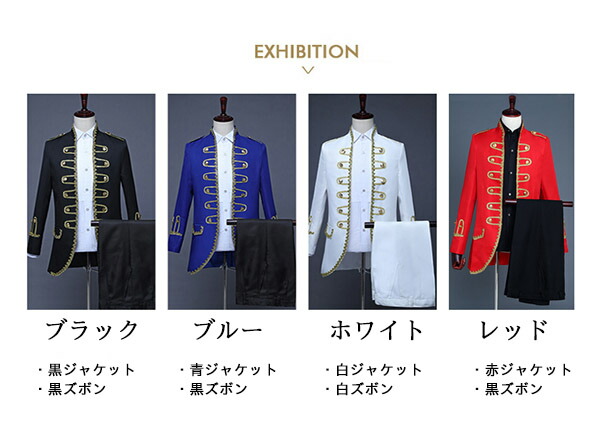 公爵 メンズスーツ コスプレ 衣装 中 メンズファッション 人気 XS S M L XL ブラック ホワイト レッド ブルー