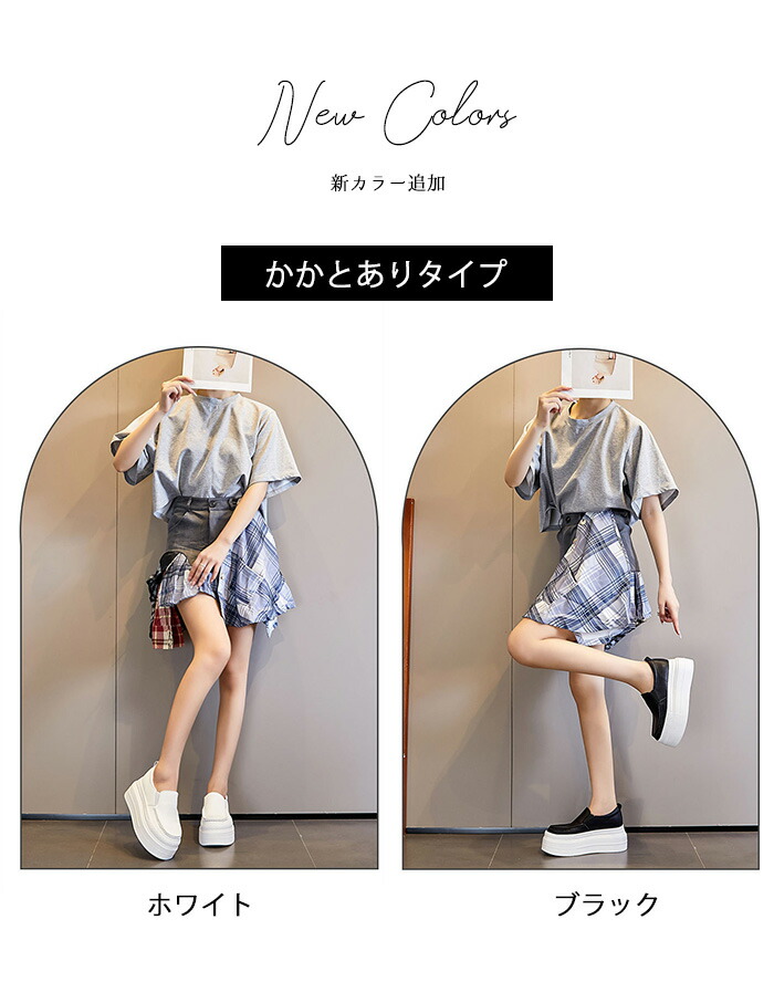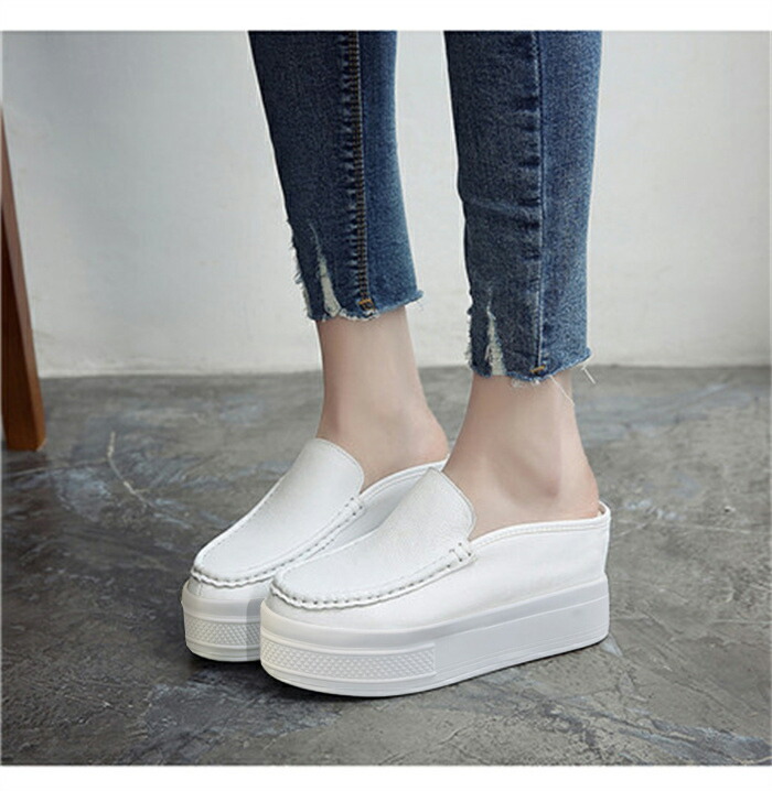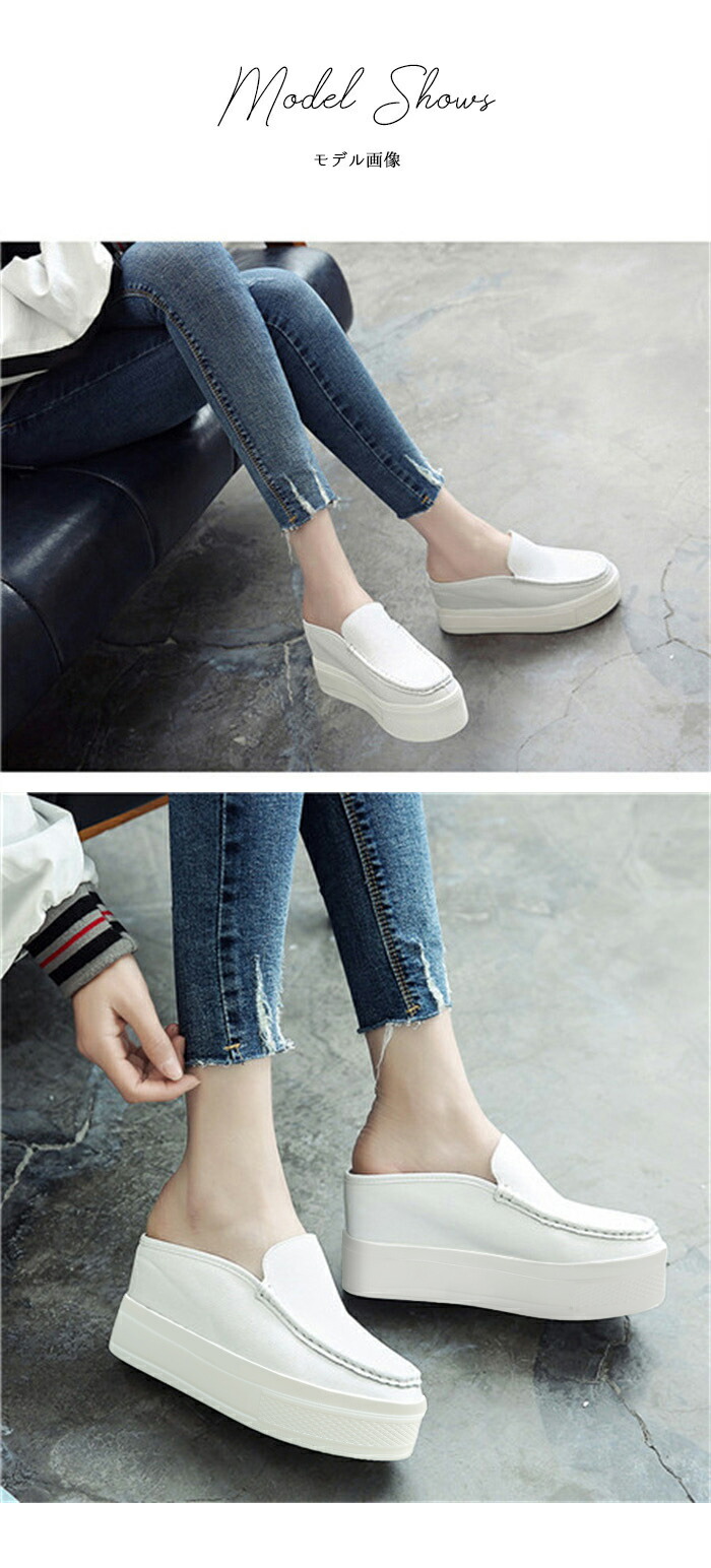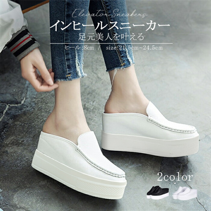スリッポン 厚底 スニーカー レディース インヒール かかとあり かかとなし 2way 美脚 靴 紐なし 白 黒 軽量 疲れにくい 歩きやすい 小さいサイズ 8cm ヒールアップ 通勤 通学 10cm