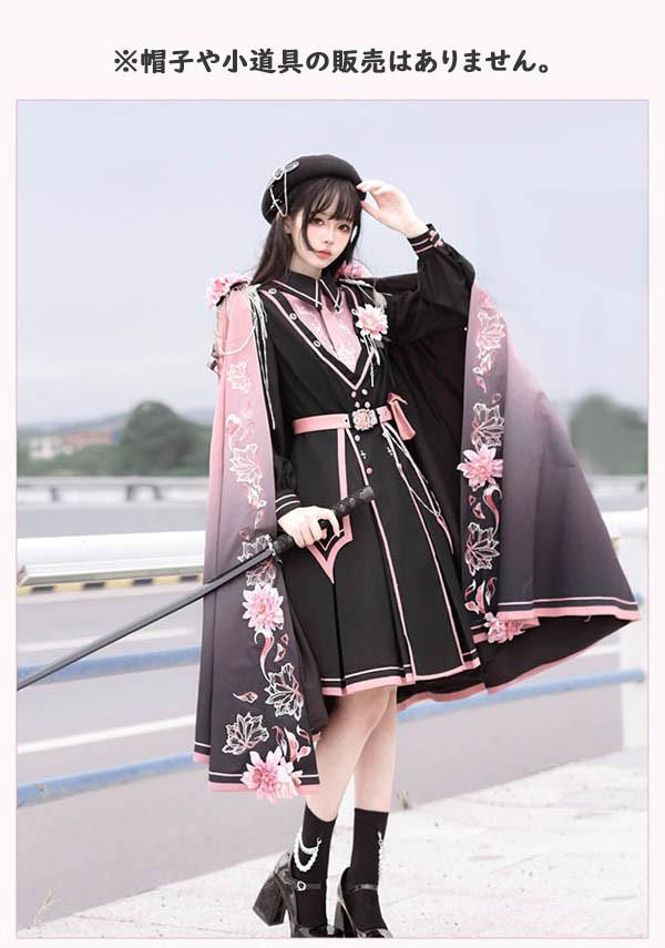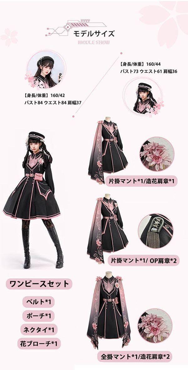 和風ロリータ ミリタリー風ワンピース ホビー 通販 S M L XL 付けない 片掛マント/OP肩章*2 全掛マント/造花肩章*2 フルセット