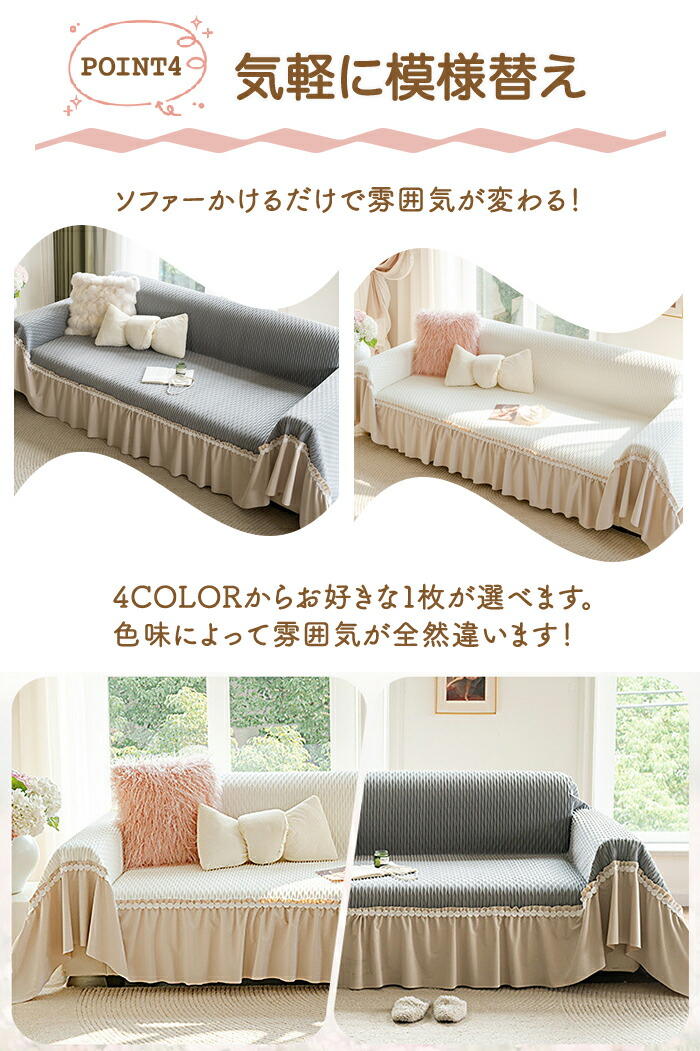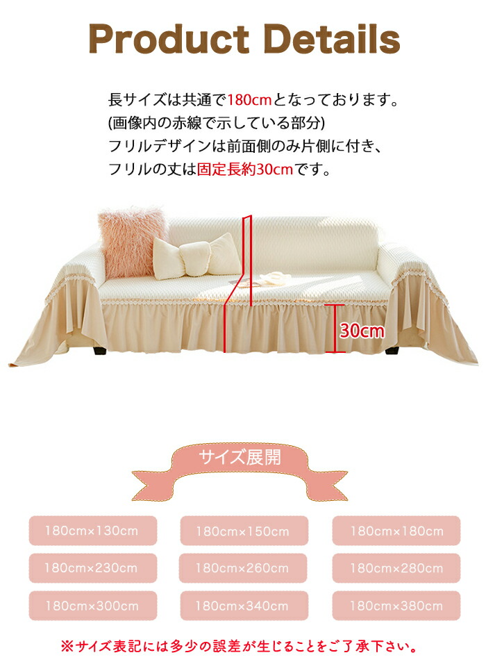 ソファーカバー かけるだけ 姫系 フリ ホワイト オレンジ グレー チャコール 180*130cm 180*150cm 180*180cm 180*230cm 180*260cm 180*280cm 180*300cm 180*340cm 180*380cm