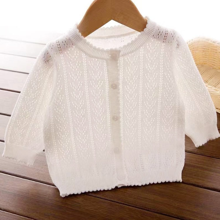 ブルー 紫外線カット 夏 薄手 女の子 キッズ トップス カーディガン ボレロ 通販 ホワイト ピンク ブルー イエロー 90 100 110 120 130 140