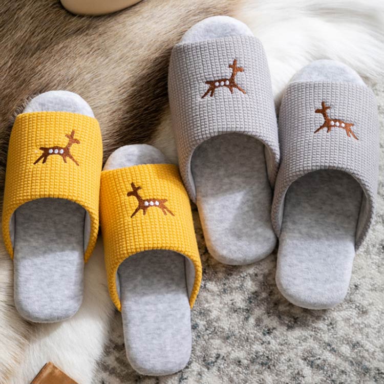 前開き スリッパ ワッフル調 ルームシューズ ルームスリッパ 夏用 涼しい 蒸れない 洗える 静音 レディース メンズ 刺繍 春秋 来客用 オフィス用 室内履き