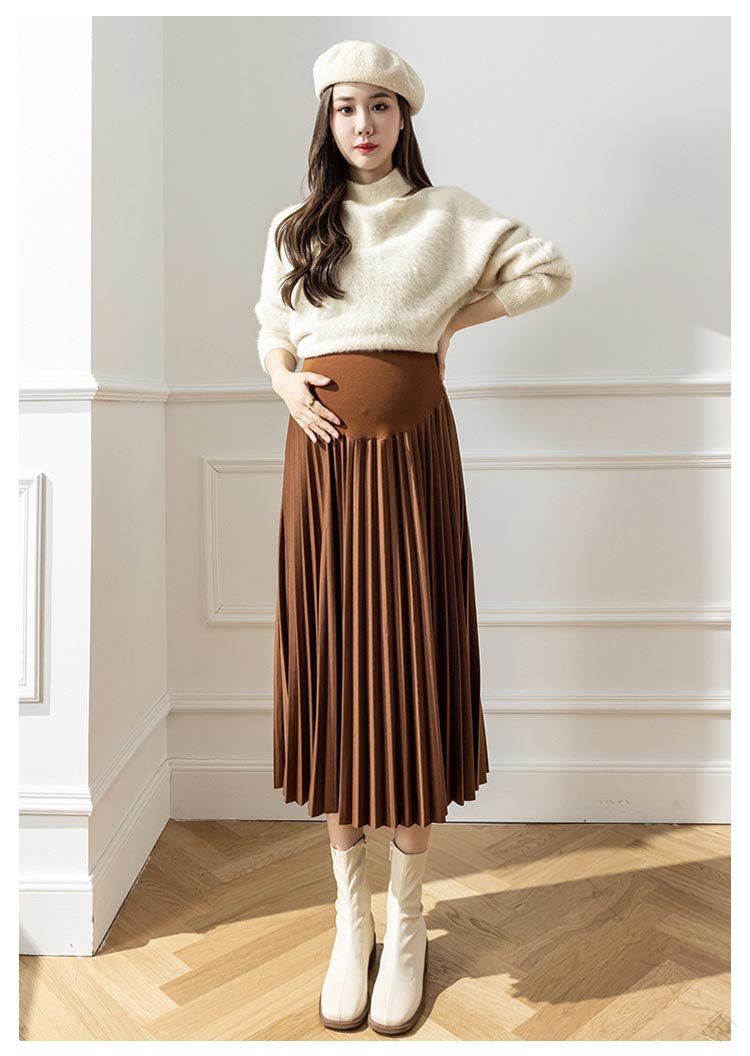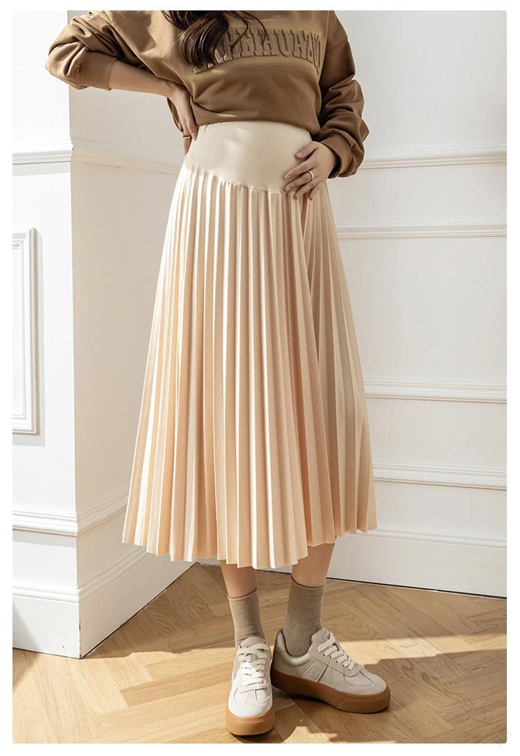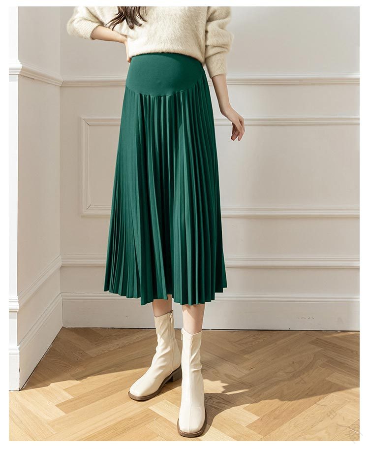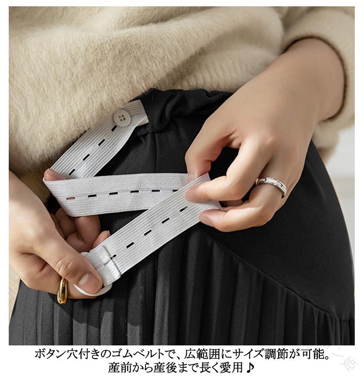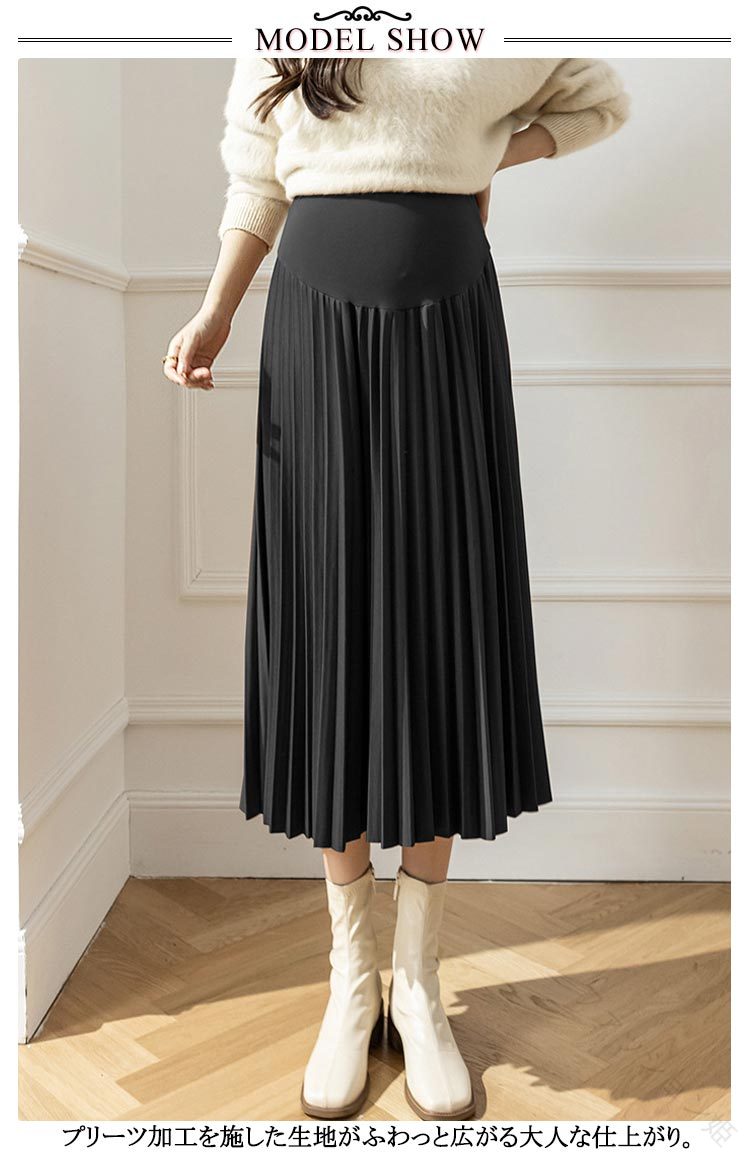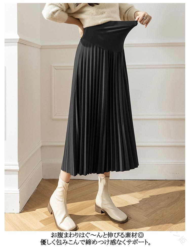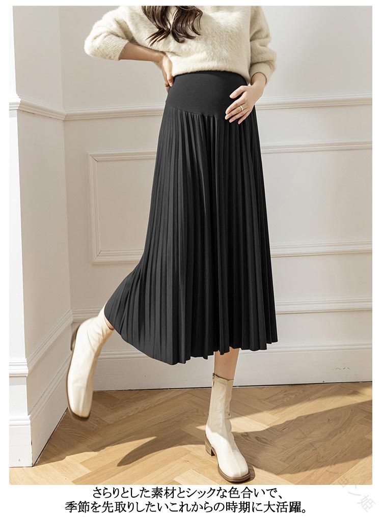 マタニティスカート プリーツスカート ロングスカート ミモレ丈 妊婦服 ボトムス 産前産後対応 ゴムリブ仕様 オフィス通勤 春秋冬おしゃれかわいいシンプルきれいめ体型カバー アジャスター付ウエスト調整