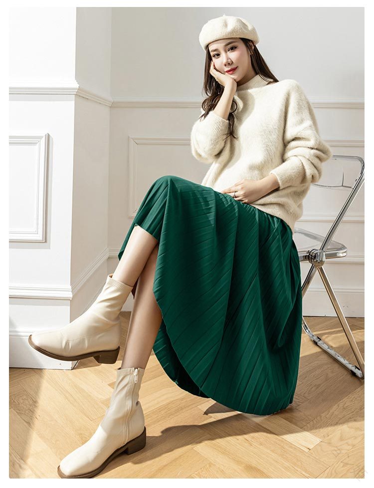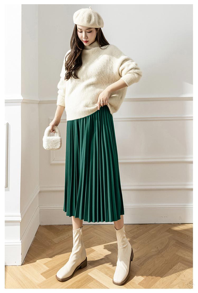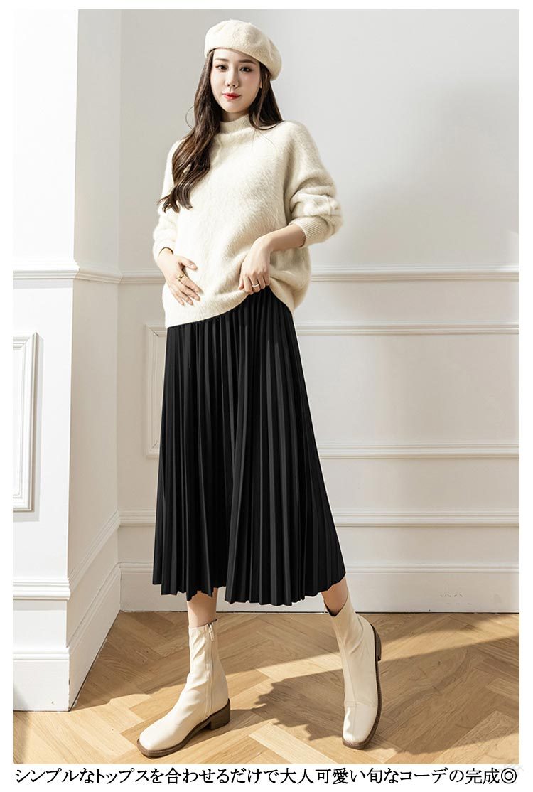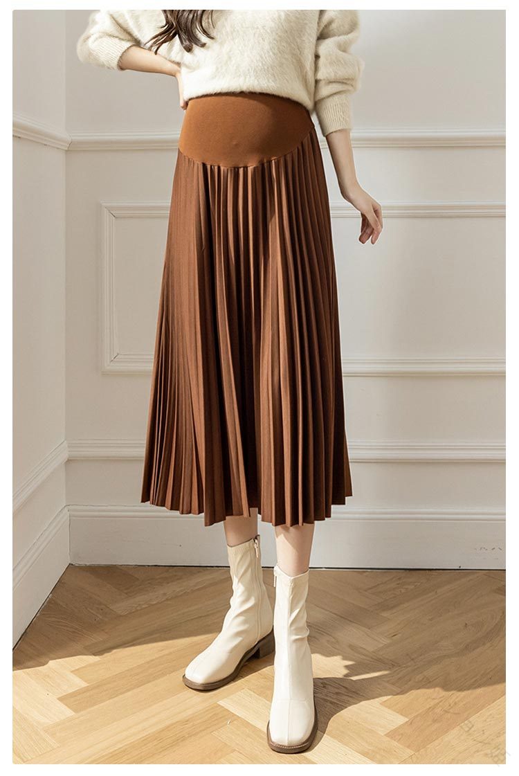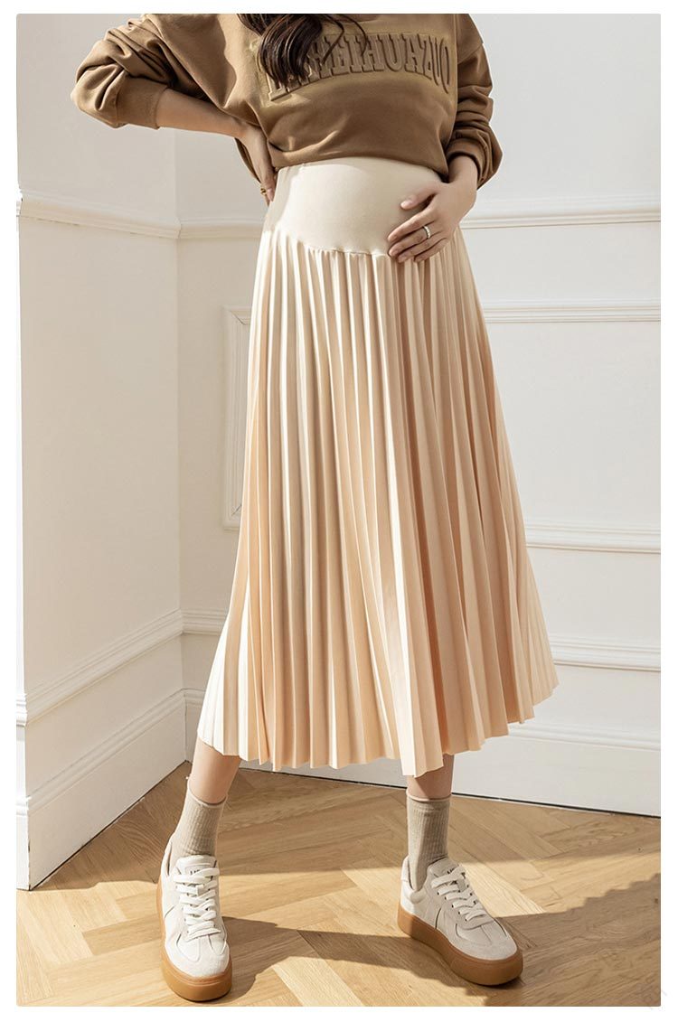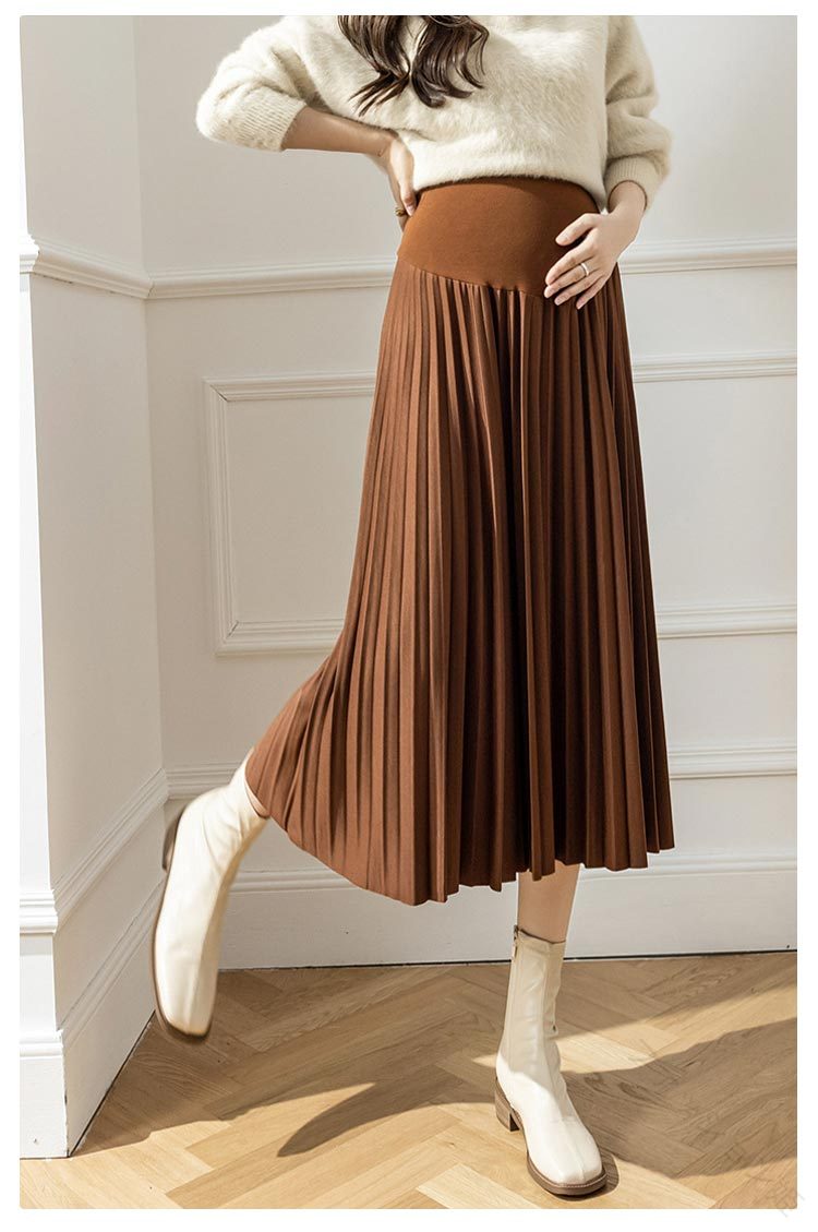 マタニティスカート プリーツスカート ロングスカート ミモレ丈 妊婦服 ボトムス 産前産後対応 ゴムリブ仕様 オフィス通勤 春秋冬おしゃれかわいいシンプルきれいめ体型カバー アジャスター付ウエスト調整