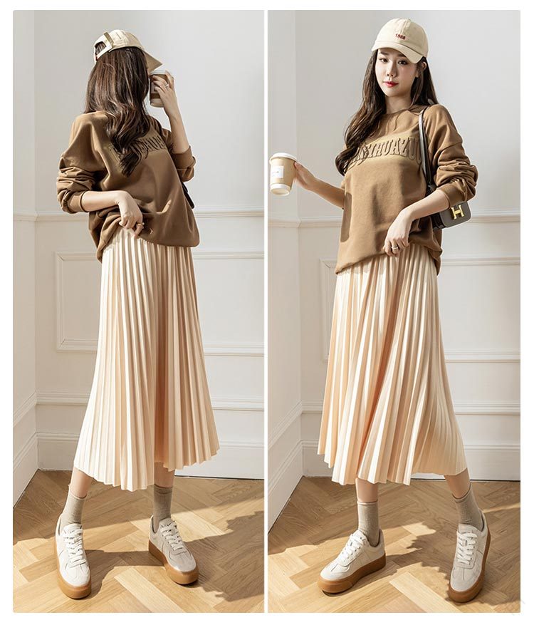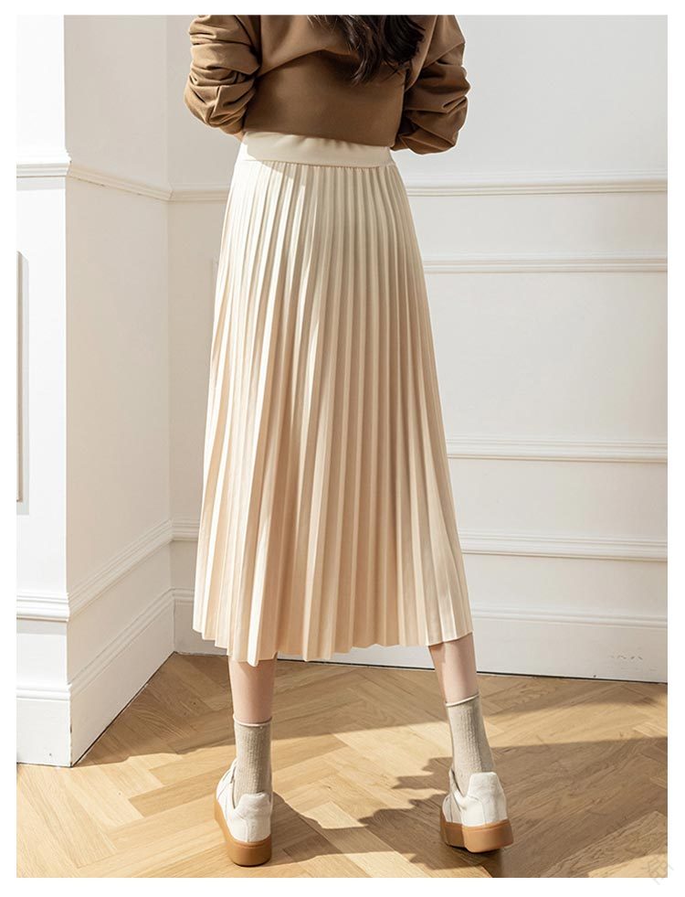 自分でウエストゴムを調節できるシンプルで使いやすいプリーツスカート。ピッチが細かいアコーディオンプリーツなのでクラス感があり、大人っぽい雰囲気で着られます。縦ラインが入っているのでスッキリとしたシルエットで、細見え効果もバツグン!ウエストにはボタン付きのゴムを採用。変化する身体に合わせてサイズ調節ができるのが魅力。お腹をすっぽり包んでくれるハイウエスト仕様。安心感のある履き心地がGOOD☆コーディネートの幅がぐっと広がる1枚は持っていたいマストアイテム。どんなトップスとも合わせやすく、着回し力ばっちりな無地カラー。洗い替え用に色違い揃えも!