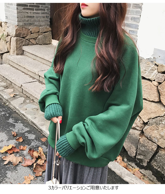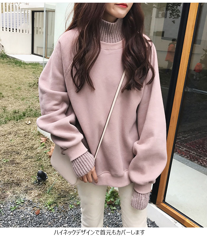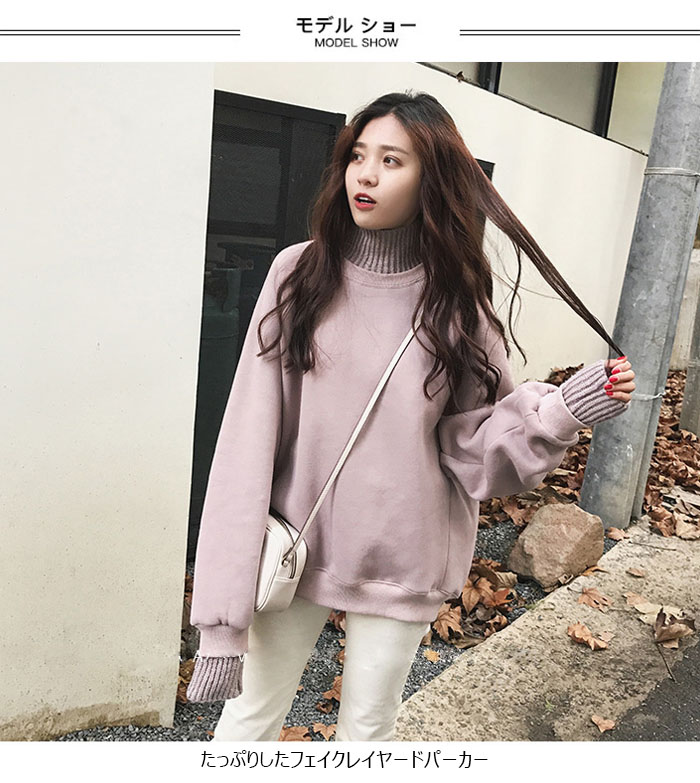 パーカー レディース プルパーカー フェイクレイヤード ハイネック 無地 かわいい シンプル カジュアル お洒落 プルオーバー トップス 秋新作 体型カバー