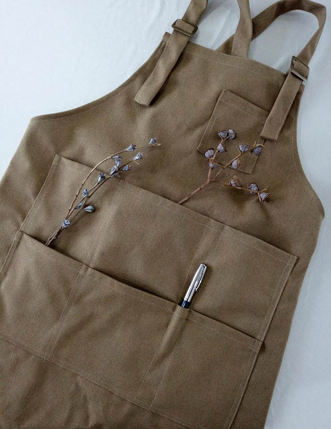 エプロン 無地 綿麻 リネン チュニックエプロ