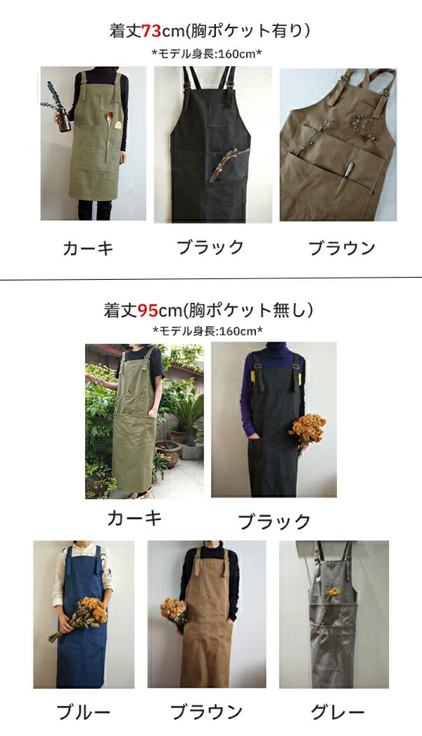 エプロン 無地 チュニックエプロン ワ メンズファッション 豊富 着丈73cm カーキ 着丈73cm ブラック 着丈73cm ブラウン 着丈95cm カーキ 着丈95cm ブラウン 着丈95cm グレー 着丈95cm ブラック 着丈95cm ブルー