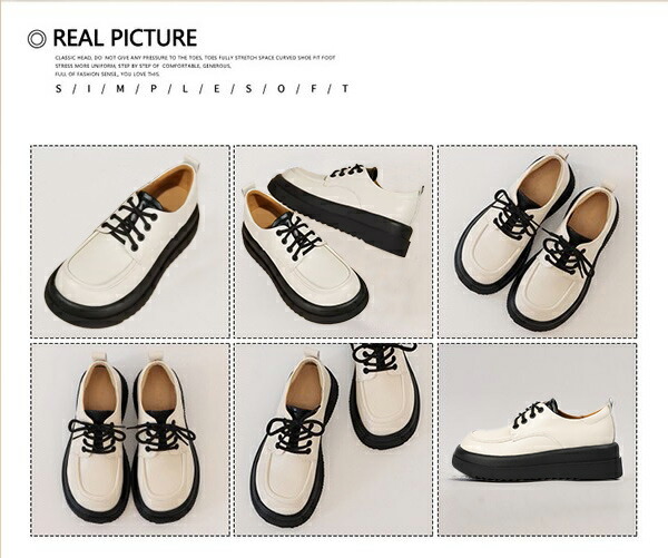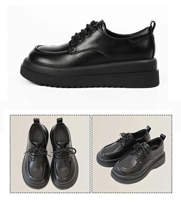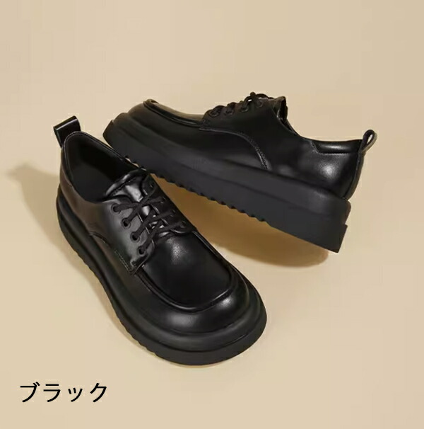 レースアップ シューズ トラックソール 厚底 黒 編み上げ ローファー スニーカー レディース おしゃれ 可愛い 春秋 フェイクレザー 合成皮革靴 Uチップ レトロ ファッション カジュ スクエアトゥ
