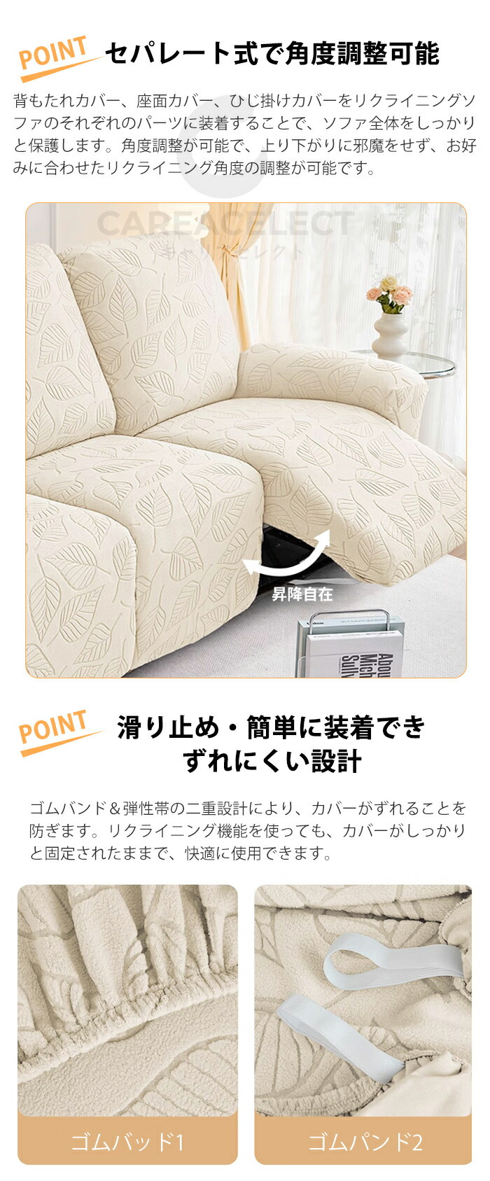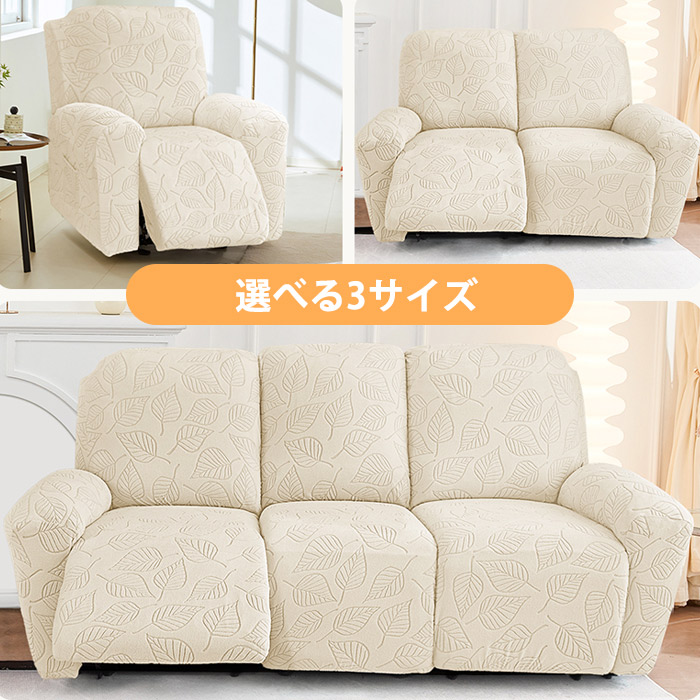 洗える 電動 リクライニングソファカバー かけるだけ リクライニングシートカバー 伸びる ストレッチ フィット 肘付き サイドポケット 葉っぱ柄 2人 3人掛け 汚れ防止 犬猫対策 水洗いOK 爪とぎ