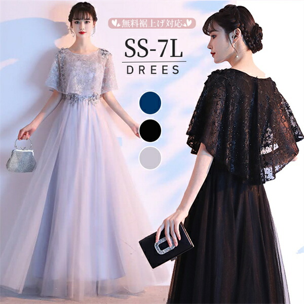 パーティードレス ロングドレス レディ レディースファッション 続々登場 ネイビー グレー ブラック SS S M L 2L(XL) 3L(2XL) 4L(3XL) 5L(4XL) 6L(5XL) 7L(6XL)