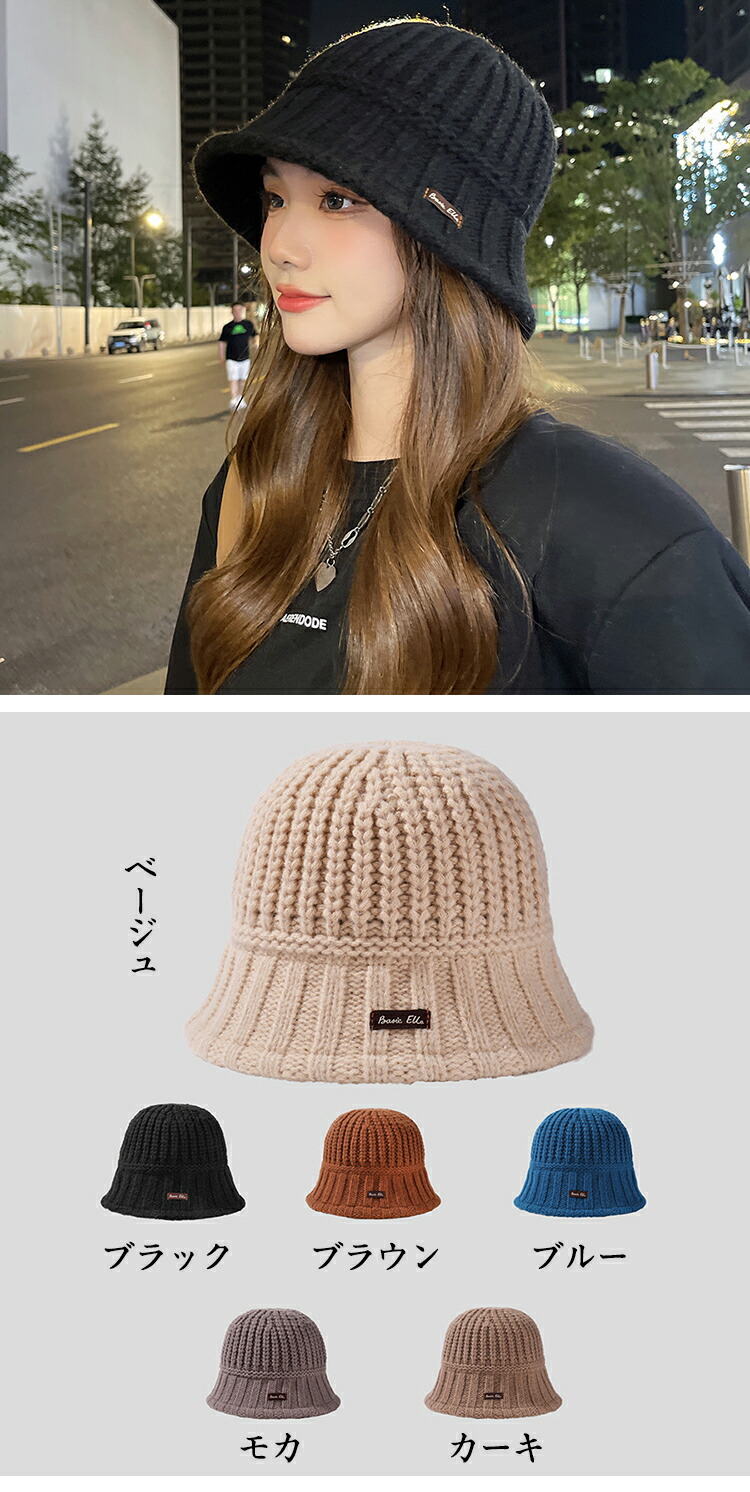 【防寒対策・小顔効果】太めの糸をざっくりと厚手に編み込み、ボリューム感たっぷりの仕上がり、お顔の輪郭を包み込むようなツバ付きタイプなので、小顔見えも叶う♪
