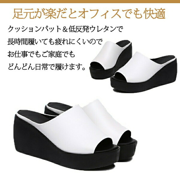 OLさんの心を虜にしたオフィスサンダル ウェッジソール サンダル 厚底 ウエッジソール 厚底サンダル レディース ヒールサンダル ミュール 美脚 らくちん 前あき 脚長 オシャレ 小さい デスクワーク