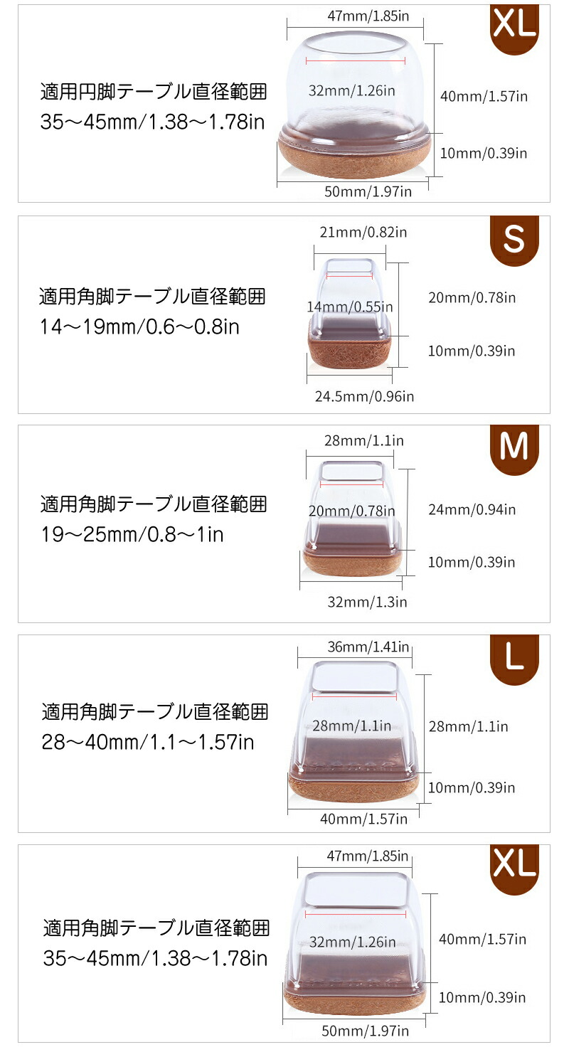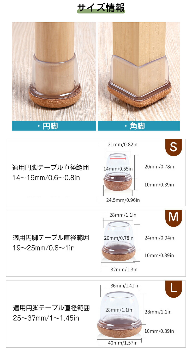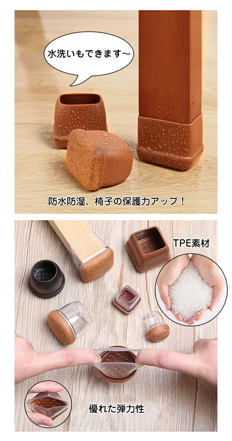 椅子脚カバー 4脚分 8個セット 椅子 日用品雑貨 文房具 手芸 人気 透明円脚 透明角脚 ブラウン円脚 ブラウン角脚 S M L XL(+270円)