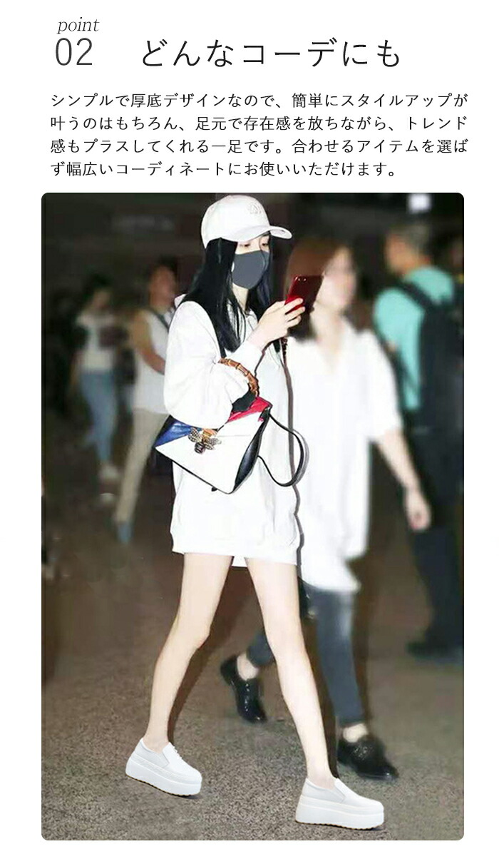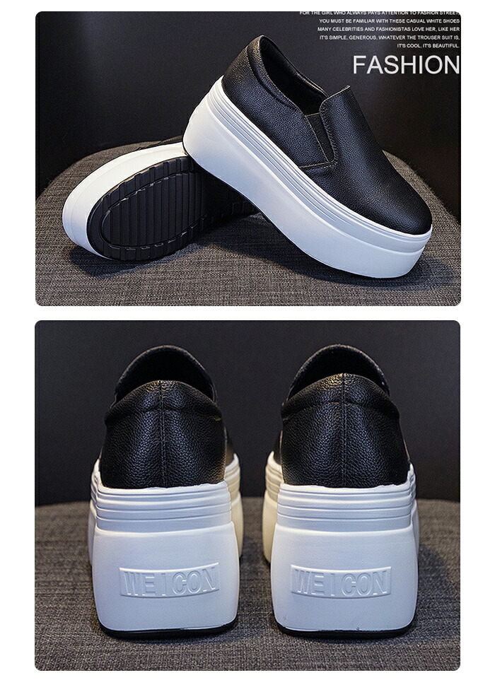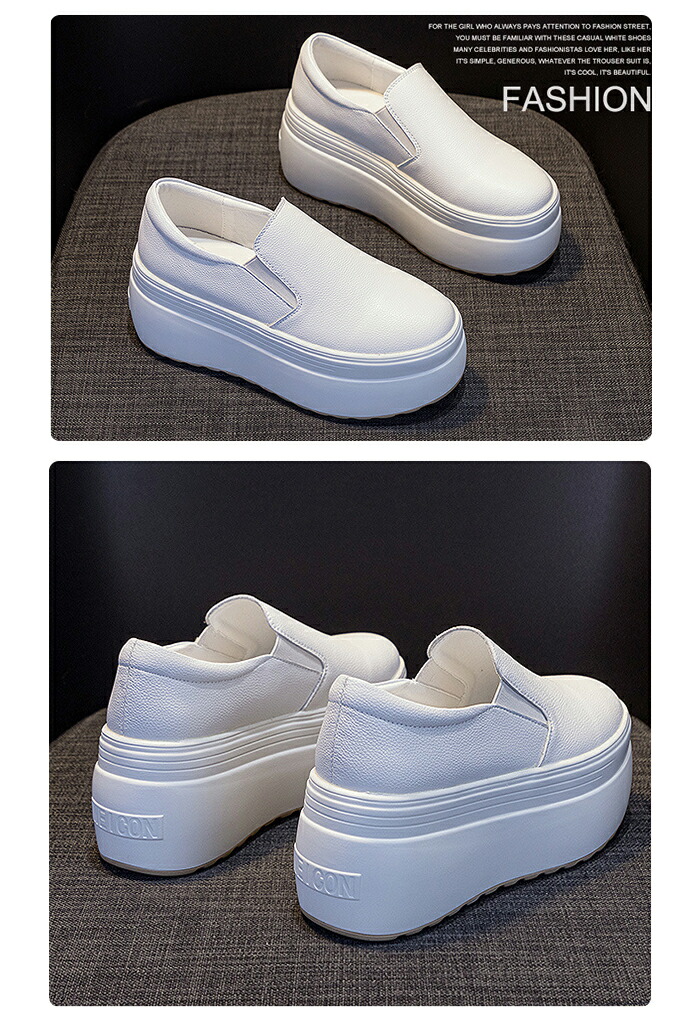 スリッポン レディース 厚底 スニーカ 靴 人気 ホワイト ブラック 21.5 22.0 22.5 23.0 23.5 24.0 24.5
