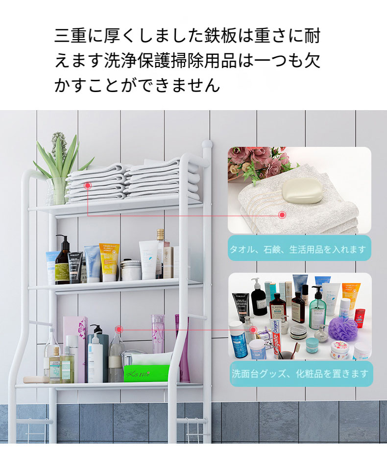 ランドリーラック 洗濯機ラック ランドリー収納 洗濯機収納 収納棚 洗面所 収納 つっぱりラック 棚付きランドリーラック 洗濯物