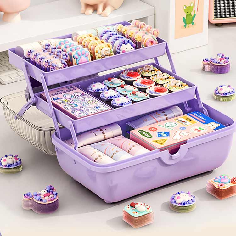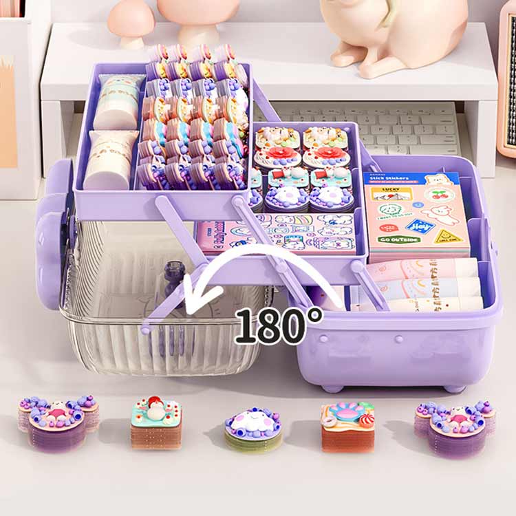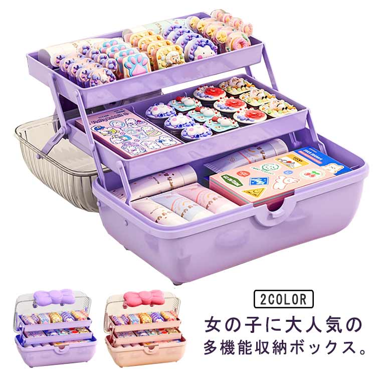 大容量の3段式、蓋を180度開くことができます。便利なスライド式なので、開けるだけで一目瞭然!
