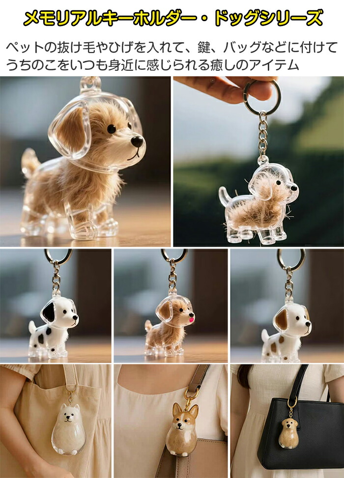 ペット 遺毛 ケース 犬型 キーホルダー チャーム 透明 遺毛ケース 遺毛入れ 犬の毛収納ボトル 収納ボトル 抜け毛 毛 歯 ひげ 抜け毛収納 形見 思い出 かわいい 癒し 持ち歩 メモリアル