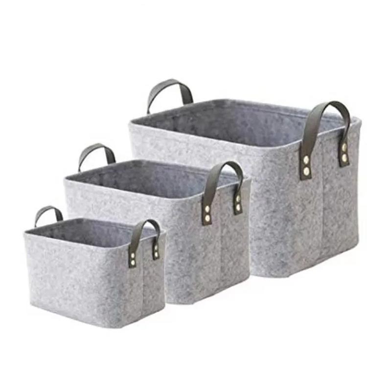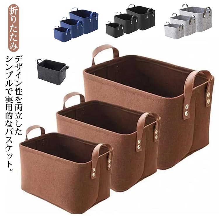 本や雑誌、衣類、タオル、おもちゃの整理や収納に、幅広い用途で使っていただけるフェルトバスケット。