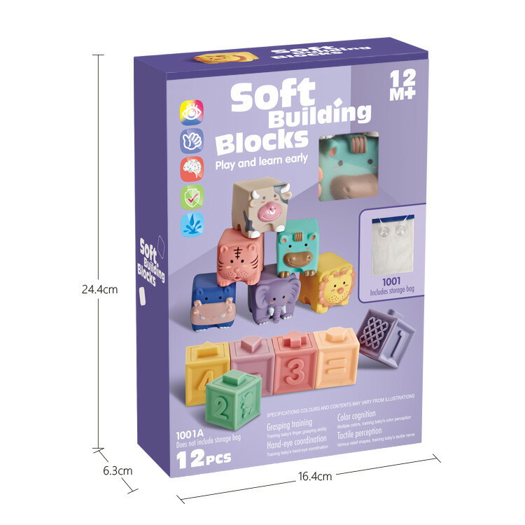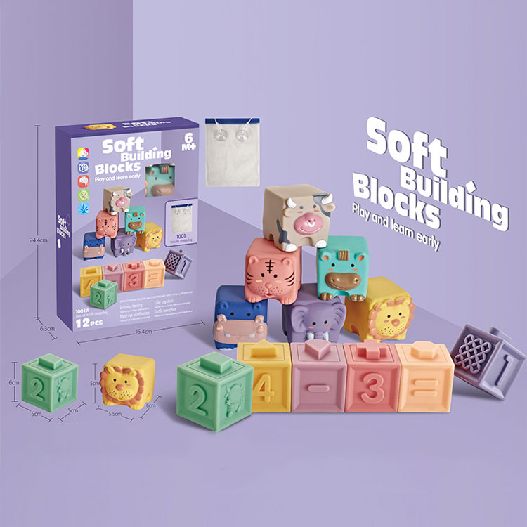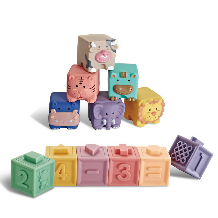 ソフトブロック 音の出るおもちゃ 積み木 12pcs 子供 知育玩具 音が鳴る ブロック 柔らかい 赤ちゃん お風呂遊び 動物 象 河馬 乳牛 牛 虎 ライオン 6ヶ月 子どもの日 出産祝い 男 1歳