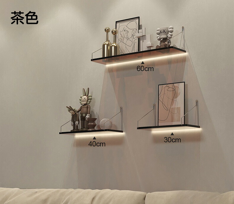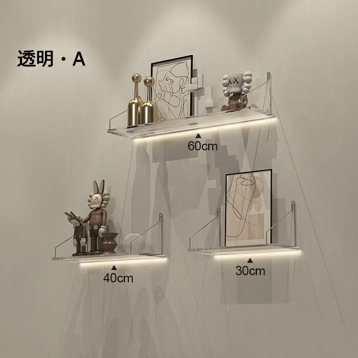 ウォールシェルフ 賃貸 取り付け アク 透明A 透明B 茶色 30cm 40cm 60cm 三点セット