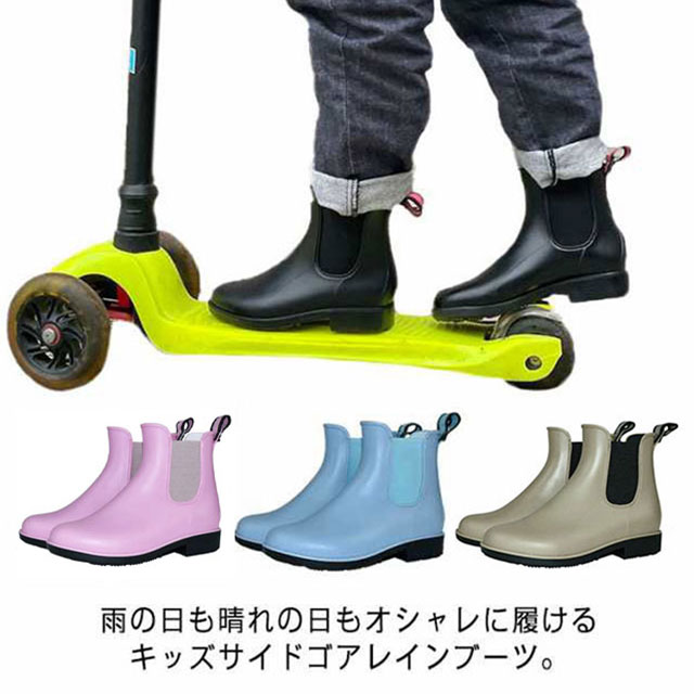 雨の日も晴れの日もオシャレに履けるキッズサイドゴアレインブーツ。