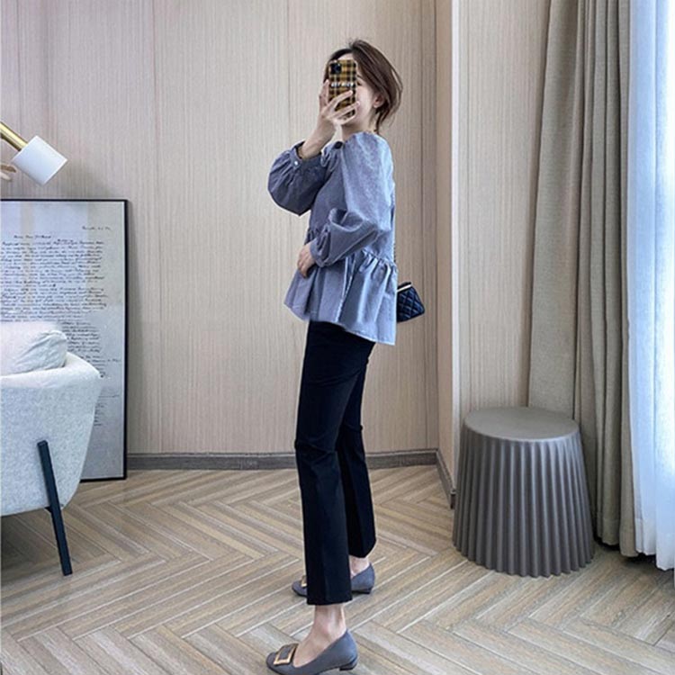お腹周りには優しくフィットする伸縮性のある生地を使用しており、ストレスフリーで快適におしゃれを楽しんでいただけます。