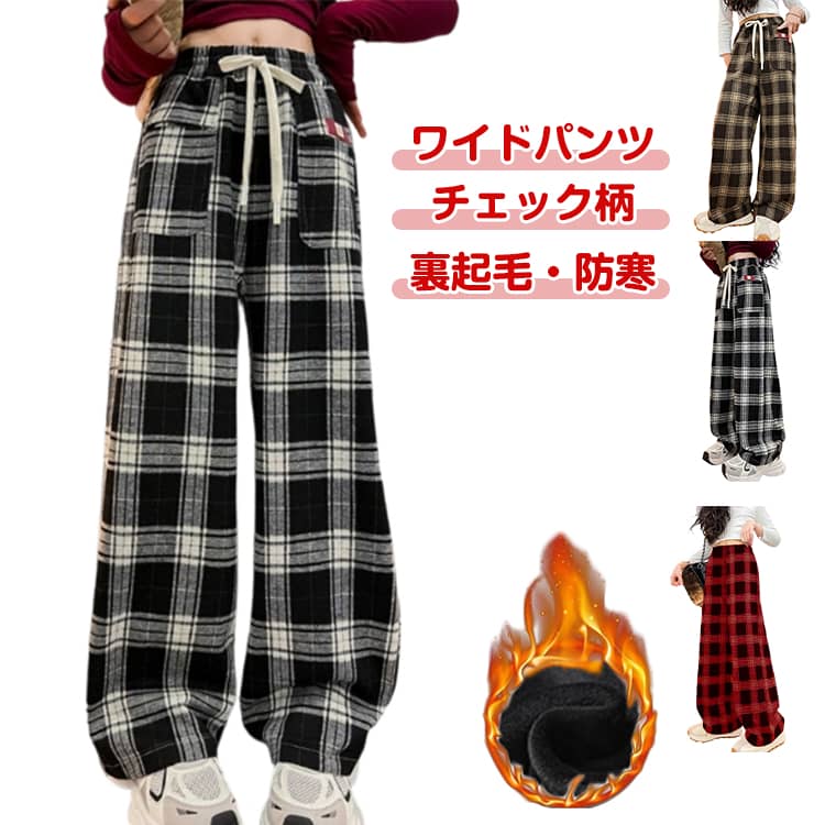 ジュニア あったか ワイドパンツ 裏起毛 女の子 チェック柄 子ども 長ズボン 子供服 ストレート ロングパンツ ウエストゴム 140 暖かい 120 らくちん 130 150 ボトムス