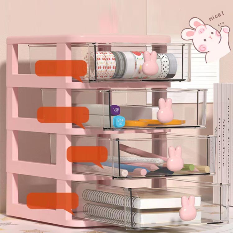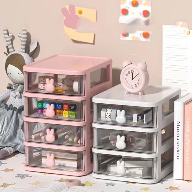 3段 4段 可愛い 卓上収納ケース 収納ボックス 文房具収納 デスク収納 小物入れ ウサギ 引き出し 卓上収納 小さめ 化粧品収納 小物収納 机上収納 小物整理 筆記用具 プラスチック