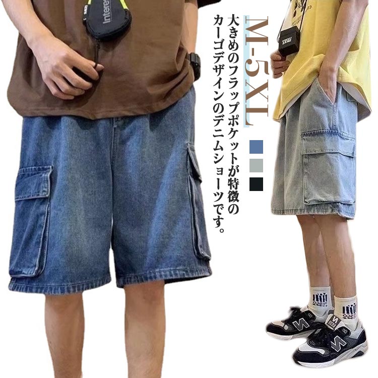 デニムパンツ カーゴパンツ メンズ カーゴショーツ ショートパンツ ハーフパンツ ジーンズ 短パン 半ズボン ワイドパンツ ストリート スケーター パンツ おしゃれ ボトムス 太い 太め ルーズ 男性
