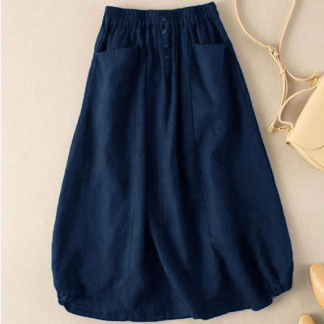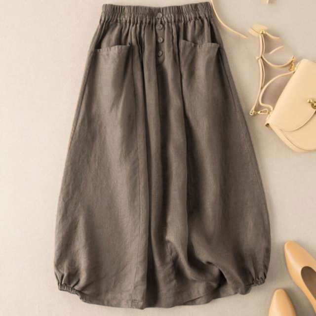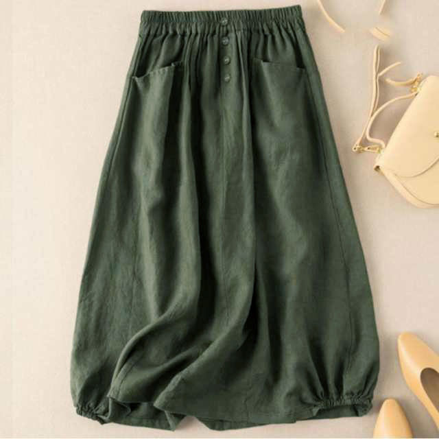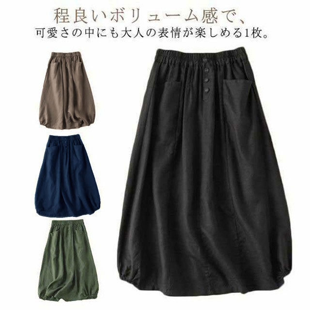 通学 レディース 綿麻風 ロング コクーンスカート ミモレ丈スカート シンプル 夏 きれいめ ロングスカート ポケット付き Aライン 春 無地 大きいサイズ 体型カバー カジュアル バルーンスカ 大人