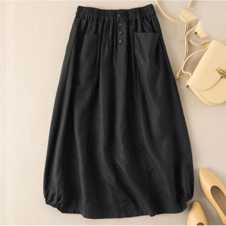 通学 レディース 綿麻風 ロング コク ボトムス スカート 通販 ブラウン カーキ ブラック ネイビー M L XL 2XL 3XL